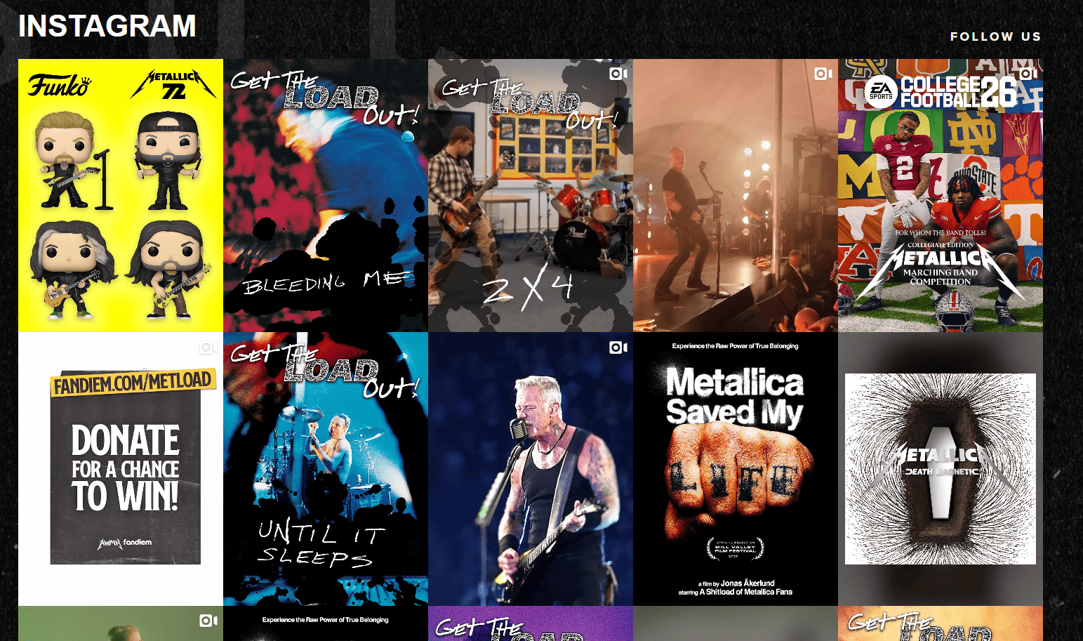 See it in action: Here’s Metallica’s social media grid feed announcing different brand news: