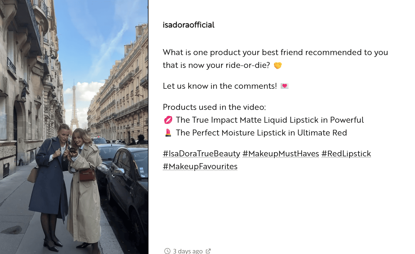 User-generated photos, reactions, and stories make your brand feel approachable and community-driven.
