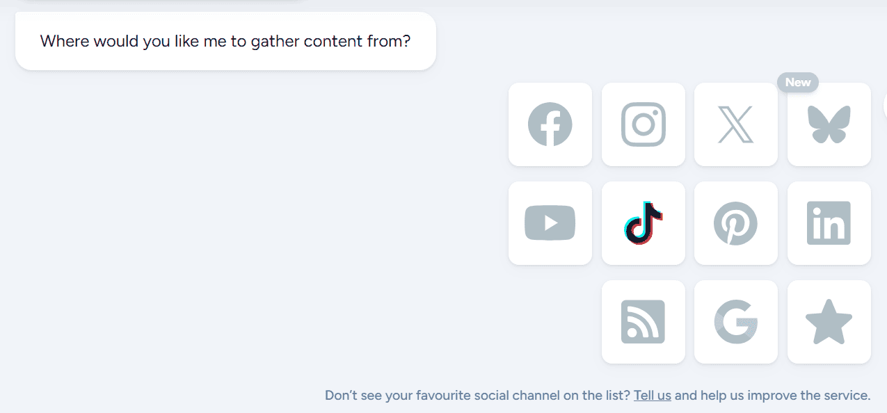 Once this is done, log in to Flockler and connect your TikTok account or specify a hashtag (e.g., #BrandChallenge) to automatically pull relevant videos as they're posted.