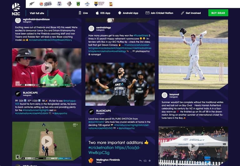 4. New Zealand National Cricket team's social media wall with official updates and UGC
