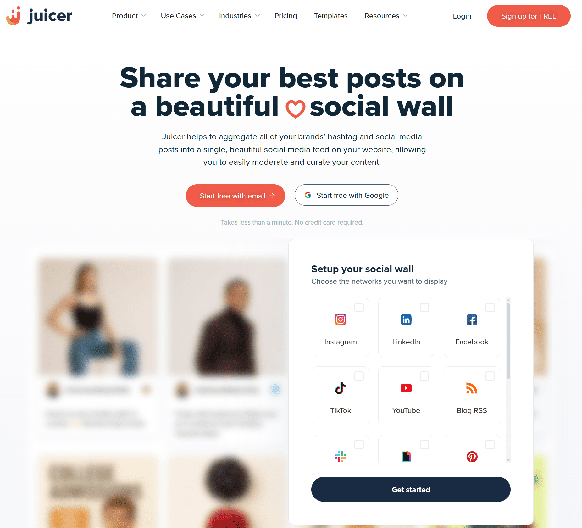 With Juicer.io, marketers can embed UGC posts from over 15 social platforms, including LinkedIn, Instagram, Facebook, TikTok, YouTube, and more.