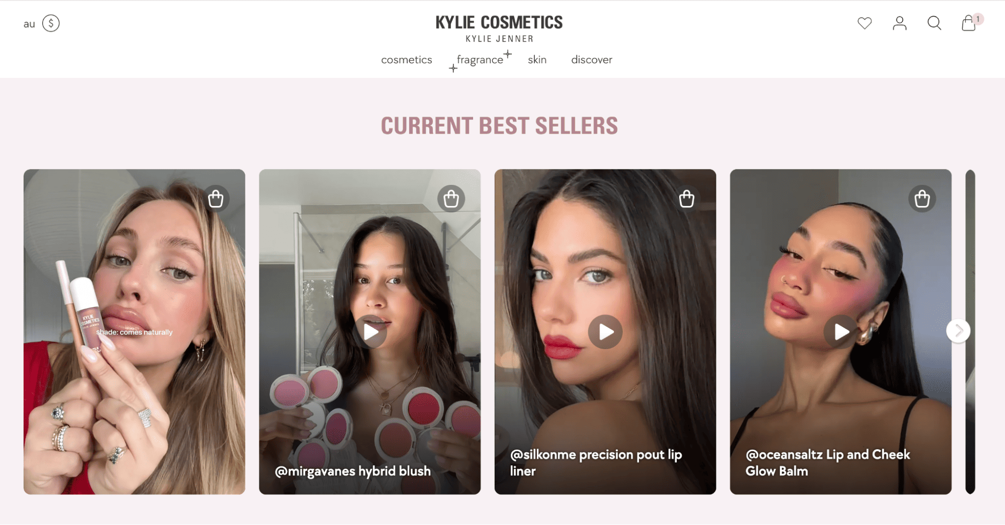 • Homepage: A UGC feed on the homepage provides immediate social proof for first-time visitors. A grid of real customer photos or a live feed from a branded hashtag shows the brand is active and that real people engage with it. Keep it visually clean, so it supports the page rather than competing with your primary message.