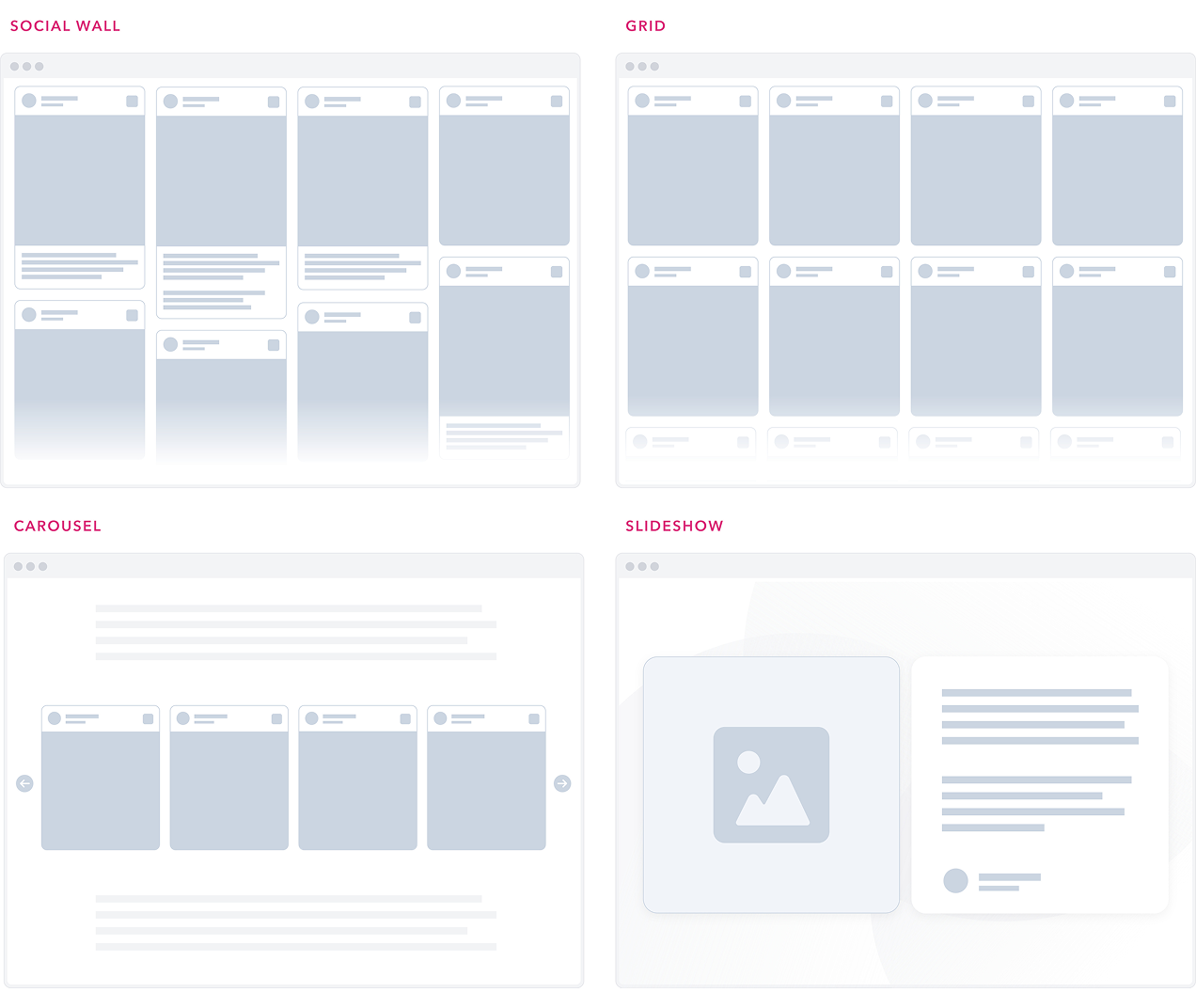 Design and publish any number of engaging layouts, from social walls to carousels, across your website, events, or digital screens, without worrying about limits or extra costs.