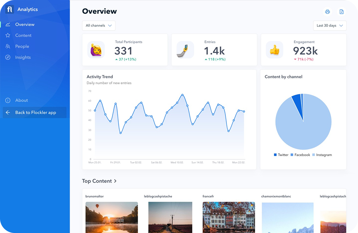Whether you're driving brand engagement, managing events, or building digital experiences, Flockler helps you collect and display social content at scale.