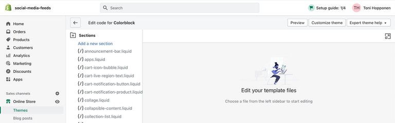 Si vous souhaitez que le embed code Flockler s’affiche sur toutes vos pages de collection et de produits, vous pouvez suivre les instructions précédentes. Mais dans ce cas-ci, vous intégrez le code de votre feed YouTube, soit à “collection.liquid”, soit à “product.liquid”.