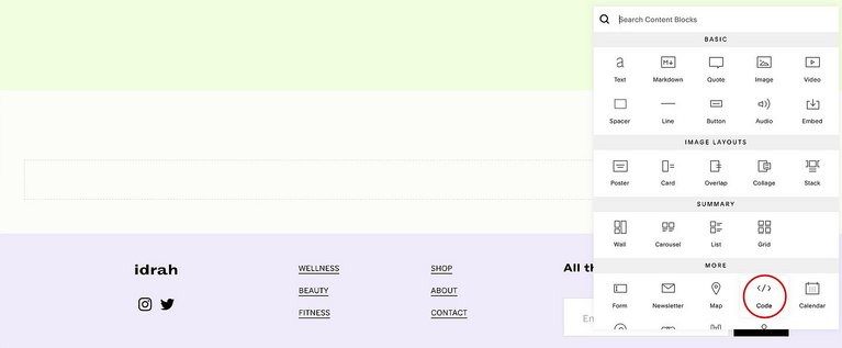 Notez que pour intégrer un widget externe à la plateforme, vous aurez besoin d’un compte payant chez Squarespace.